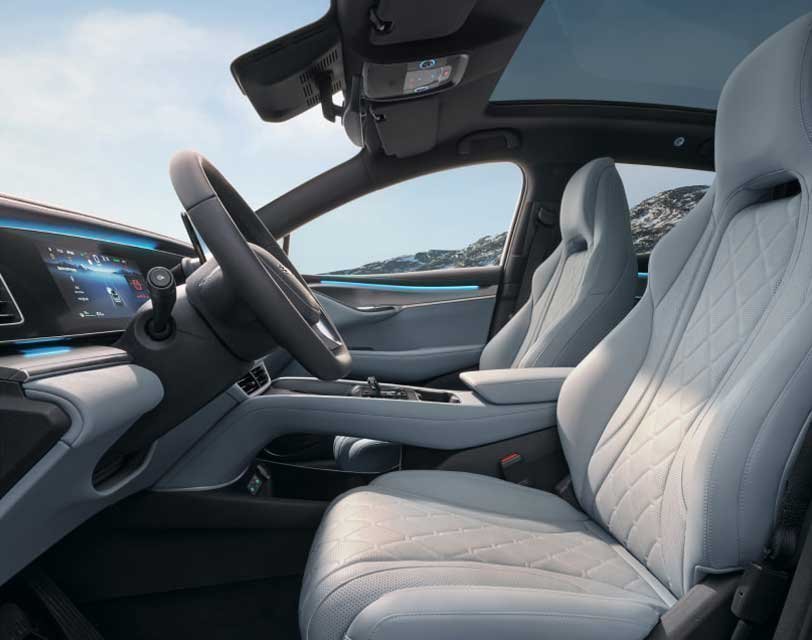 Rasakan kenyamanan premium dengan jok Nappa bertekstur quilted pada BYD Sealion 7, terbuat dari lebih dari 80% kulit vegan lembut, menciptakan sentuhan mewah, elegan, dan berkelas di seluruh interior.